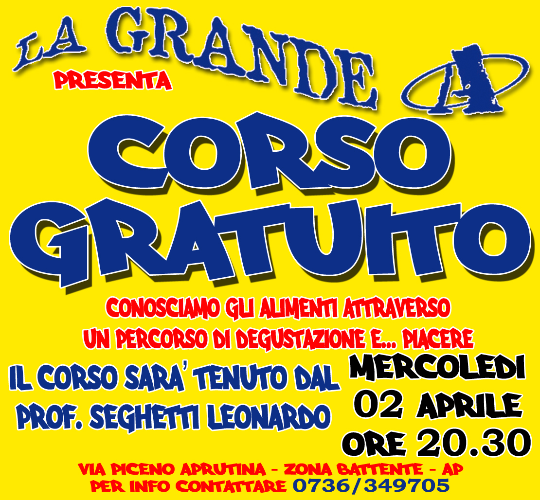 LA PARTECIPAZIONE E' GRATUITA SONO PREVISTI ASSAGGI E STUZZICHINI! VI ASPETTIAMO NUMEROSI